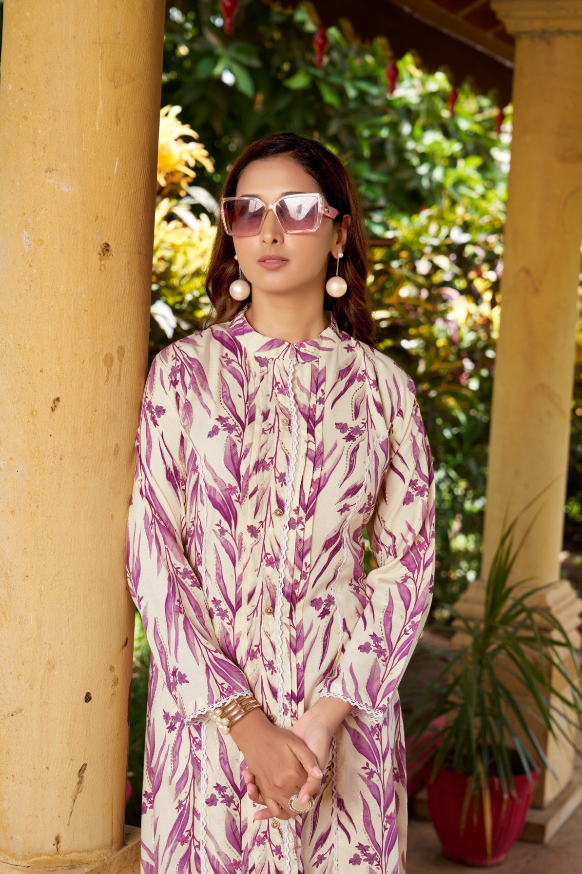 This Lavender Floral Viscose Cotton Kurti Set is perfect for those who desire a fashionable yet comfortable look. Whether you're heading to a casual outing or attending a semi-formal event, this set promises a graceful and timeless appeal.